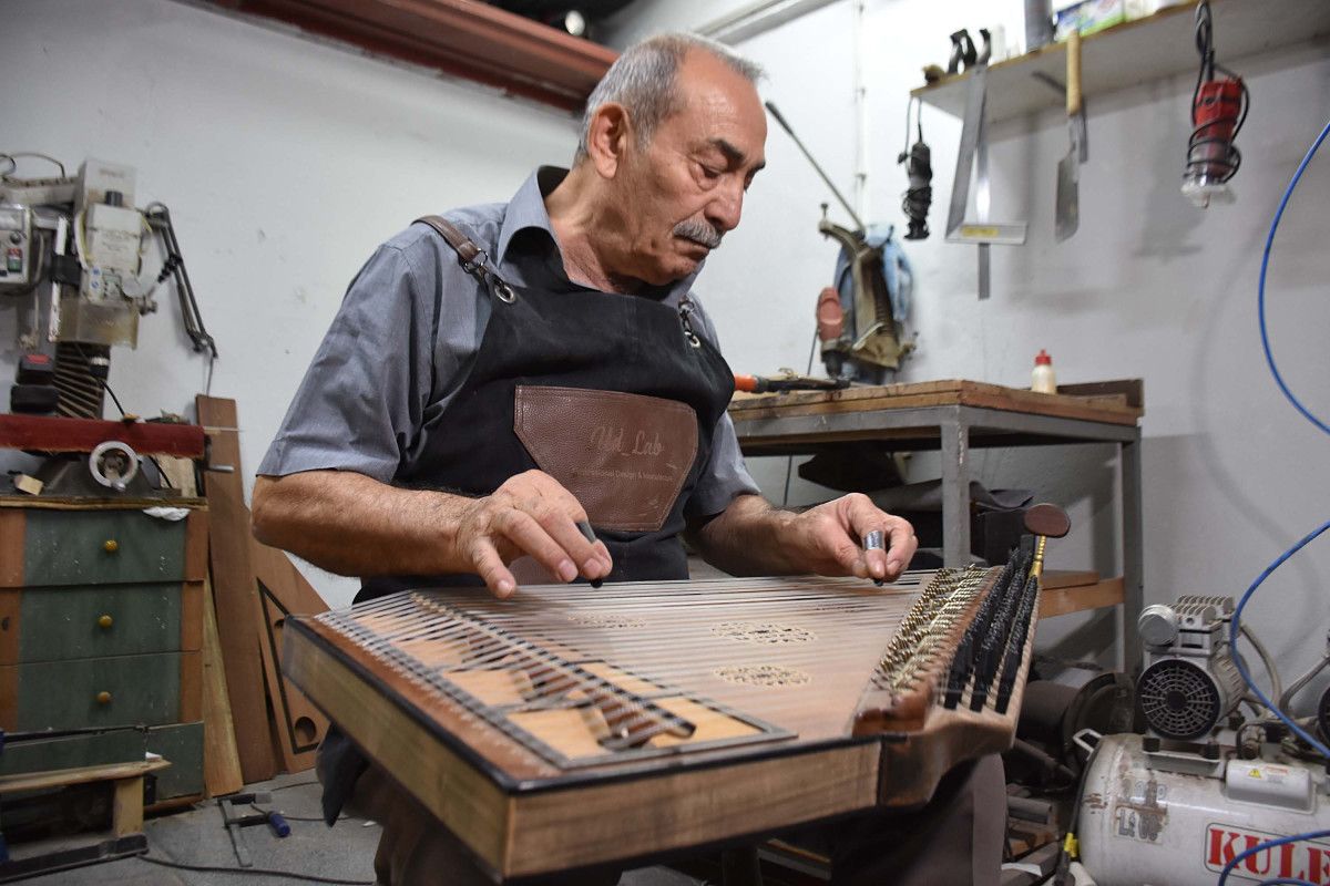 Yılda 20 tane kanun ürettiğini ifade eden Kurşunel, “Üretimde makineleşmedik. Kanunun kasası, telini takması, verniğinin kuruması, 280 adet mandalı hatasız çakması, bitmesi 20 gün ila 1 ayı buluyor” dedi.