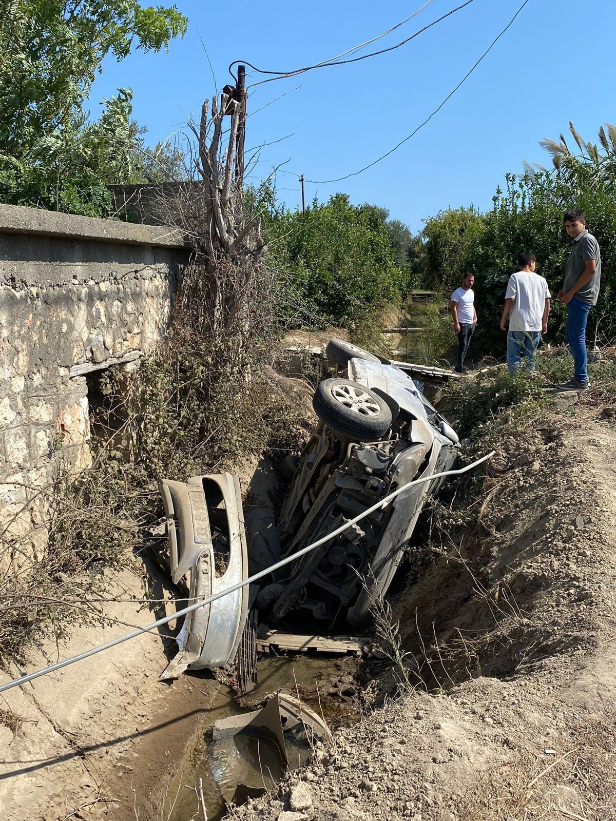Alata Mahallesi’ne varan nişanlı çift, genç kadının kullandığı otomobil ile başka bir sürücünün ismi belirlenemeyen motosikletinin karıştığı bir kaza yaşadı. Otomobil, motosiklete çarparak kontrolden çıkıp sulama kanalına devrildi.